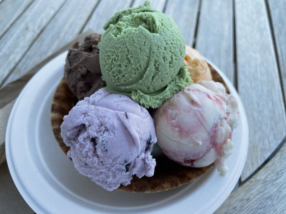 “ Thick and creamy ice cream with classic flavors and some new twists! I got two scoops moose tracks and raspberry cheesecake and loved every bite. Ill definitely be back to this neighborhood gem! There are some places to sit but I was happy eating in the car. ”
